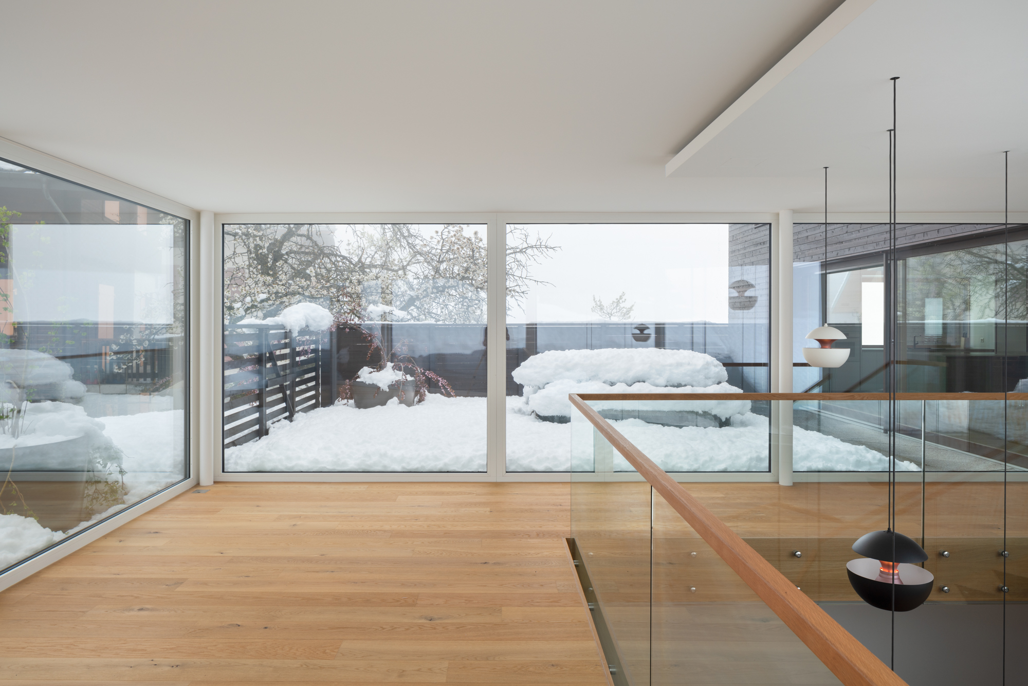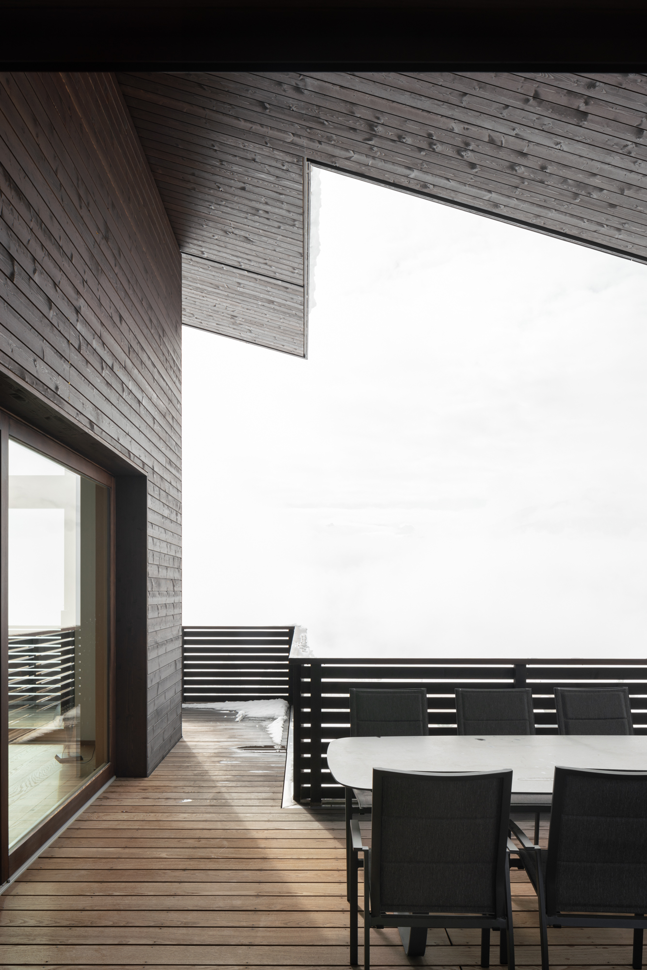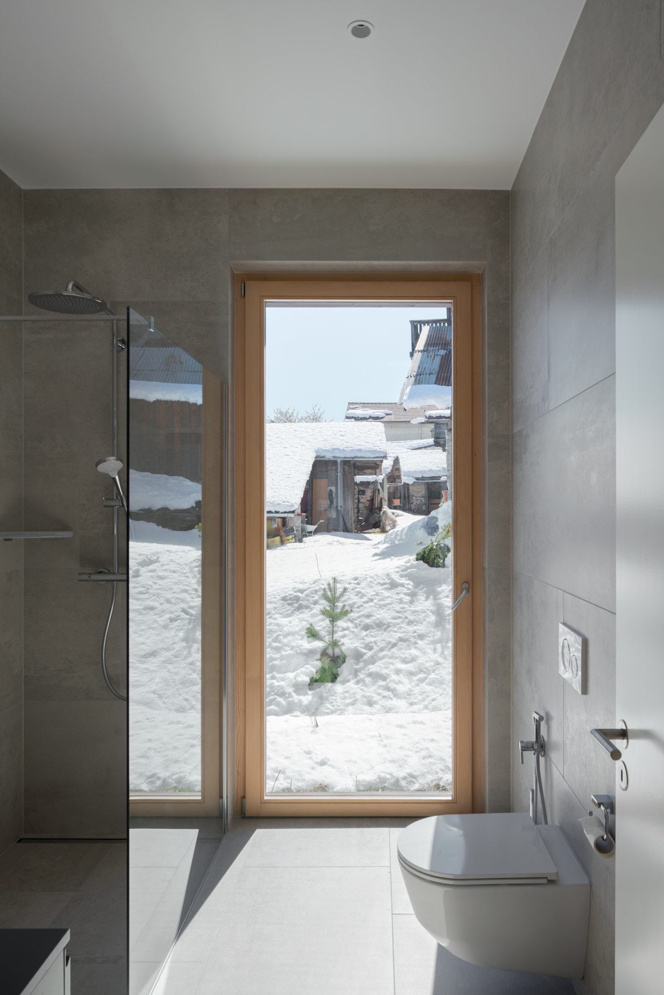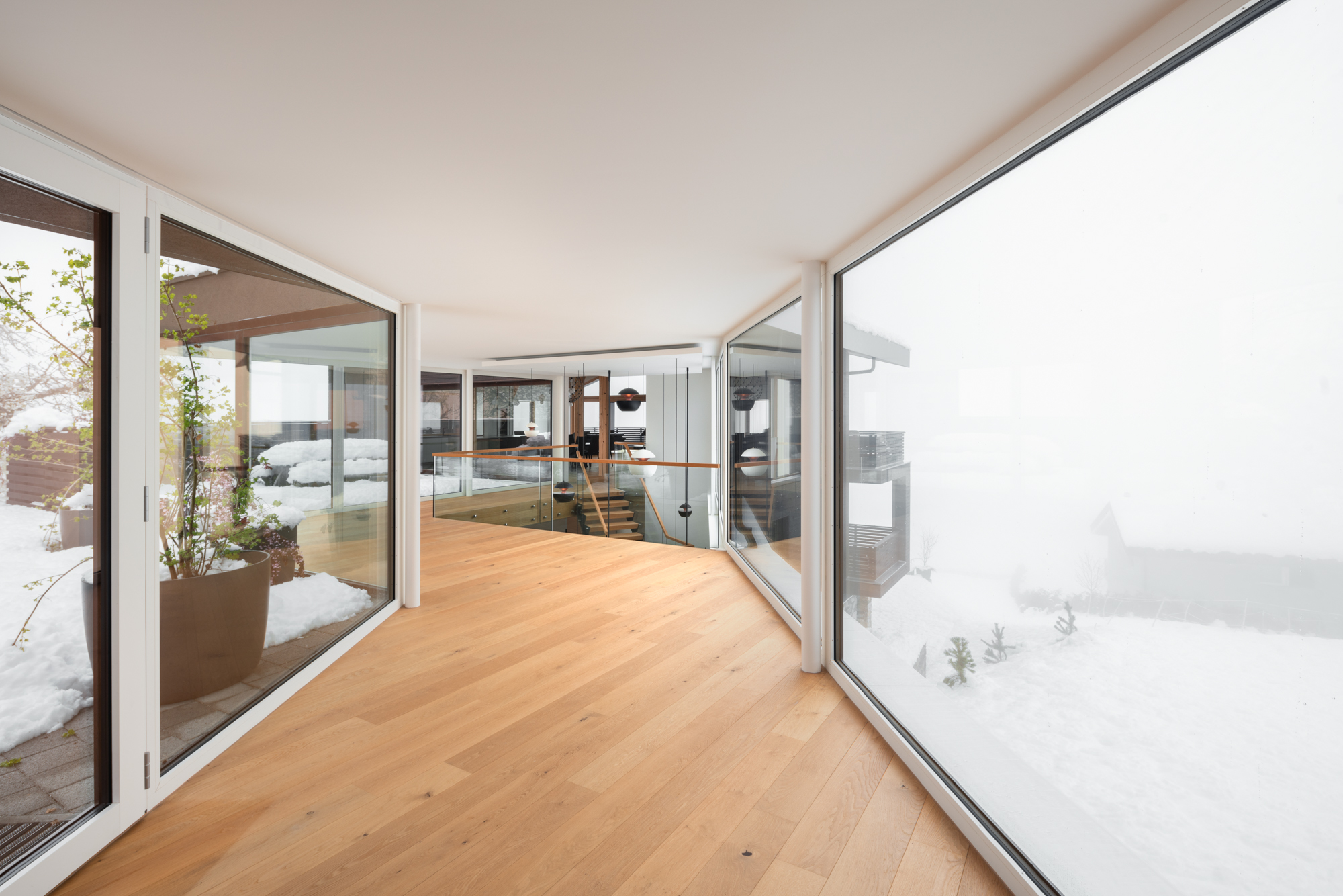 Jede Etage verfügt über großzügige Außenbereiche, die ein spektakuläres Panorama auf die Walliser Alpen sowie einen atemberaubenden Blick auf das Rhonetal, das sich bis nach Leuk erstreckt, bieten.
