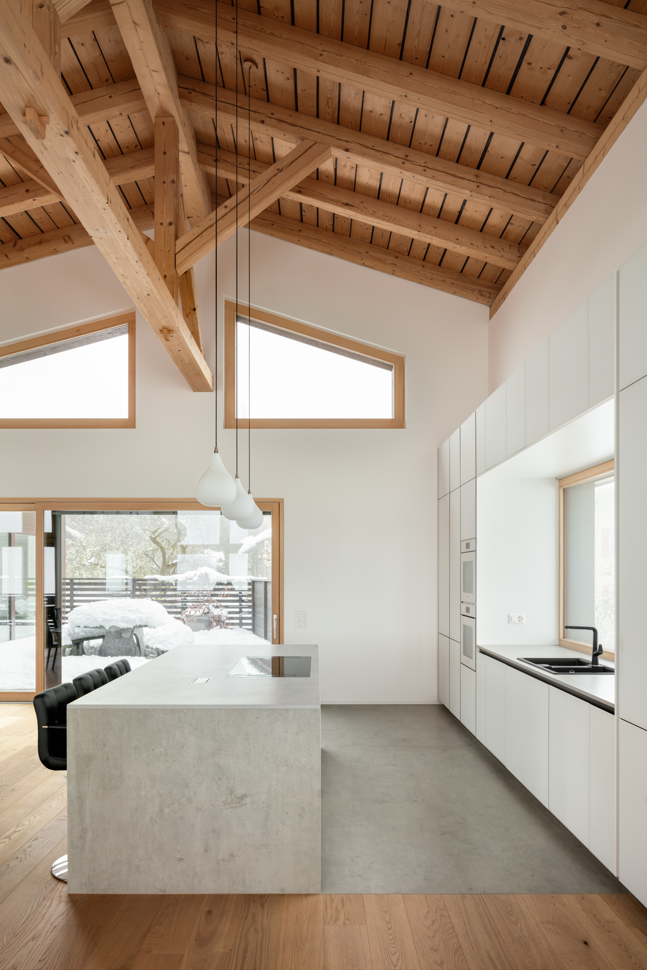 Die Scheune wurde jedoch erhalten und in das Gesamtkonzept integriert, um die Authentizität und den Charme des Herzens dieses kleinen Dorfes zu erhalten. Sie wurde neu konzipiert, um die Garage sowie den Technikraum des neuen Gebäudes zu beherbergen.