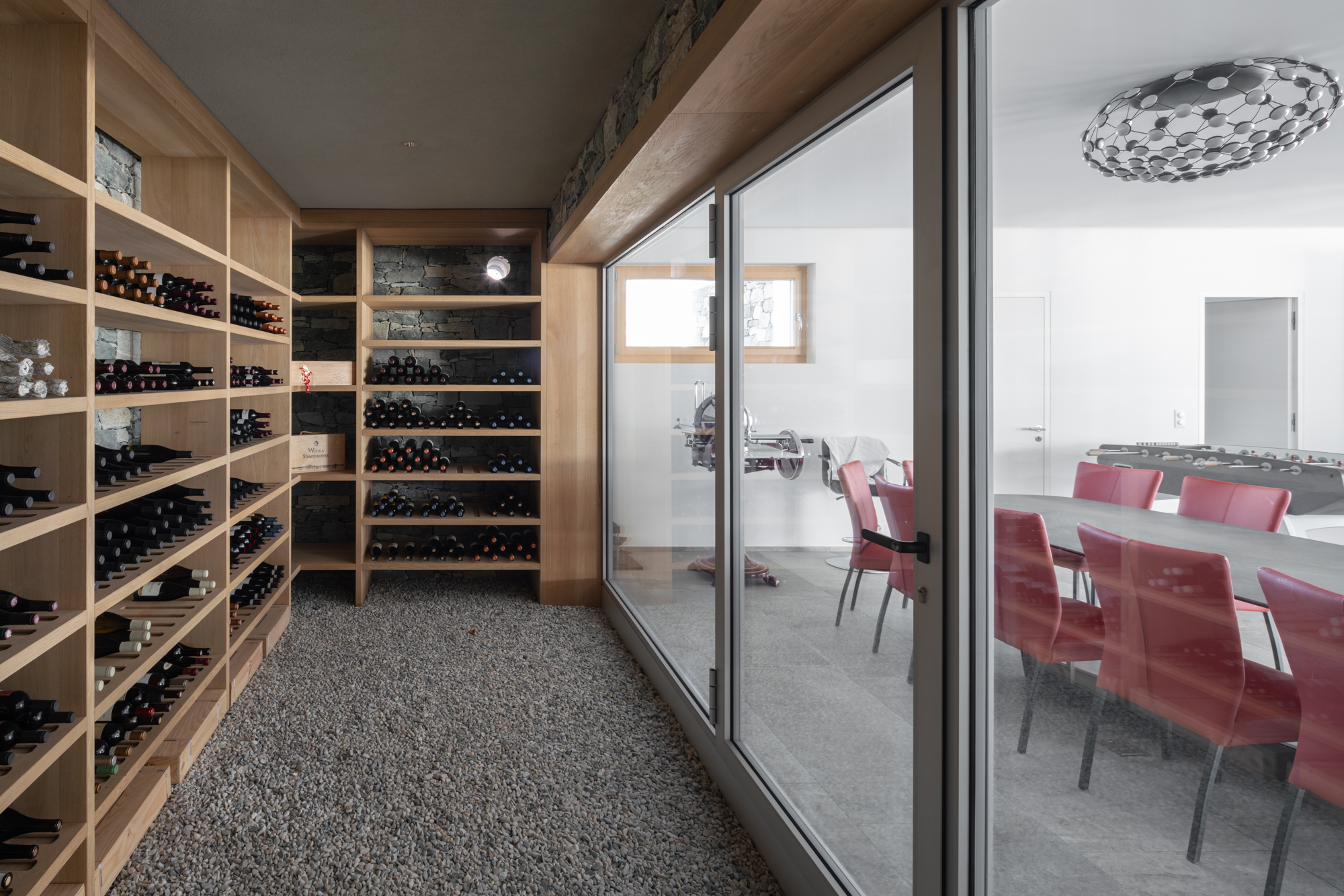Die untere Etage ist der Freizeitgestaltung und der Entspannung gewidmet. Hier befinden sich ein prächtiger Weinkeller, eine Küche mit Esszimmer, ein Billardzimmer, ein Dampfbad sowie ein Whirlpool im Freien und eine Boulebahn auf der Terrasse.